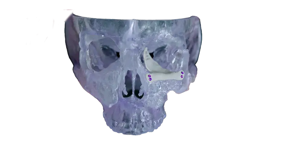 Les plaques crâniennes et orbitales spécifiques au patient sont imprimées sur 3D à l'aide d'un flux de travail complet de la conception à la livraison. Le délai de fabrication n'est que de deux jours entre le scanner et l'intervention chirurgicale. -